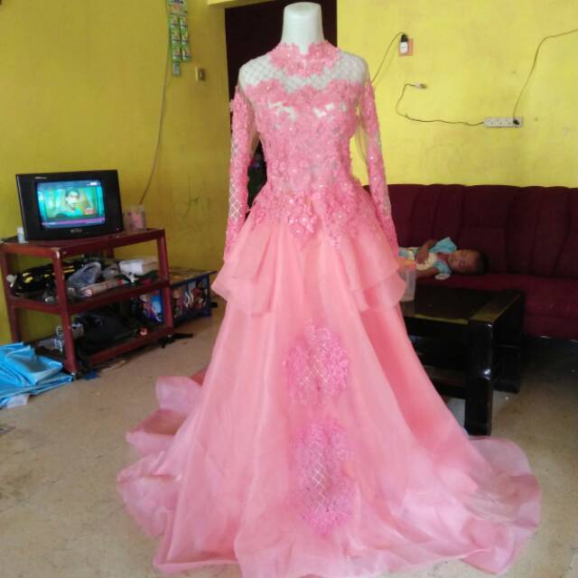 Gaun pengantin 1808009 pink peach wedding gown di tokopedia promo pengguna baru cicilan 0 kurir .